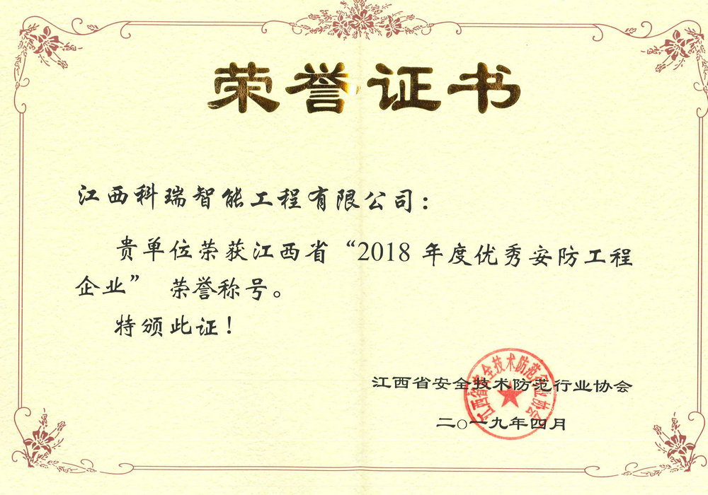 榮獲“第三屆中國(guó)安防百?gòu)?qiáng)工程商”、“2018年江西省優(yōu)秀安防工程企業(yè)”榮譽(yù)稱號(hào)!