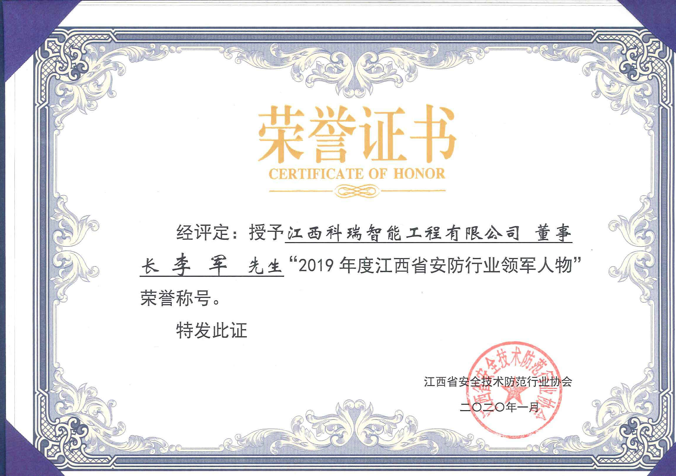 1月9日,在江西安防協(xié)會第五屆第三次會員代表大會暨2020科瑞之夜新春年會上進行了2019年優(yōu)秀企業(yè)及領軍人物頒獎、慈善募捐等活動,科瑞智能喜獲“2019年江西省優(yōu)秀安防工程企業(yè)”、公司董事長李軍先生被授于“2019年度江西省安防行業(yè)領軍人物”榮譽稱號。